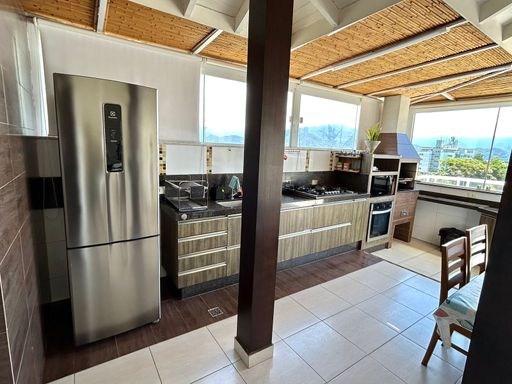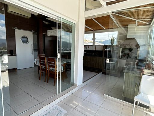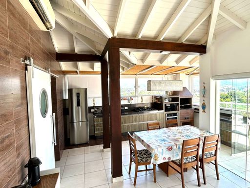 - Varanda gourmet coberta (churrasqueira) com vista livre para o mar/montanhas