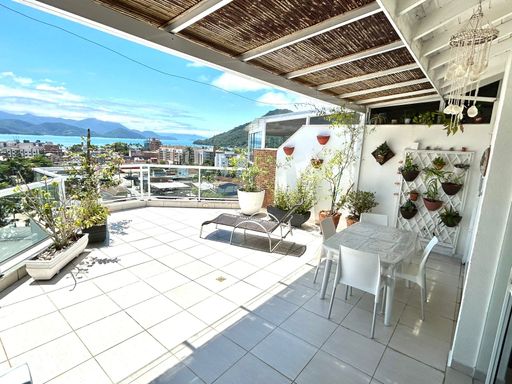 Procura uma cobertura com vista para o mar em Ubatuba? Apresentamos um imóvel único no Itaguá, bairro nobre e turístico, com acesso rápido às praias Tenório, Praia Grande e Vermelha do Centro. São aprox. 200 m² com 4 dormitórios (3 suítes + 1 dormitório), todos com ar-condicionado e varanda, além de varanda gourmet, solárium privativo com ducha e ampla área social — perfeito para morar, veranear ou investir em locação por temporada.